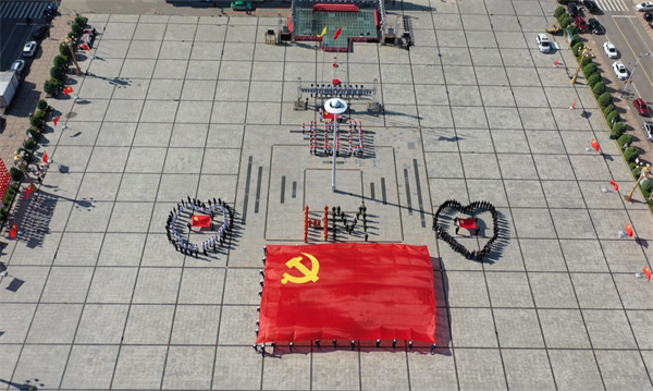 黨旗接力活動現場,全體人員莊嚴肅立,各方隊分別組成了「100」、「HM」、「心形」的圖案,表達了在黨的百年華誕到來之際,邊城呼瑪兒女永遠聽黨話、跟黨走的信念和決心。全體黨員面向黨旗,重溫入黨誓詞。大家舉起右拳,莊嚴宣誓,鏗鏘有力的宣誓聲在廣場上空迴蕩,強烈震撼着在場的每一位黨員,大家又接受了一次深刻的黨性教育和靈魂的洗禮。隨後,伴隨着雄壯的樂曲聲,黨旗接力傳遞開始,一面巨幅黨旗在黨員幹部、職工群眾的手中徐徐傳遞......參加活動的黨員幹部、職工群眾分別與黨旗合影,表達對偉大的黨和祖國母親的真摯祝願。