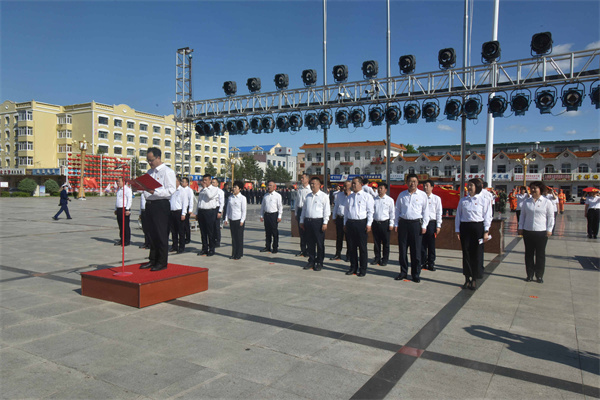 共慶百年華誕,齊心開創新局。為迎慶中國共產黨成立100周年,進一步激發廣大黨員傳承紅色基因、賡續精神血脈的使命與擔當,6月5日,黑龍江省呼瑪縣與韓家園林業局共同開展了「傳承百年志 奮進新征程」慶祝建黨百年黨旗接力活動,呼瑪縣和韓家園林業局副處級以上領導及呼瑪縣各界代表300餘人參加活動。