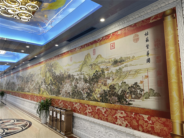 除了觀景,還可品文化。在11樓的萬家麗世界文化大觀園,有湖湘名人館、長沙記憶館、近代歷史館等數十個文化展館。萬家麗的裝修裝飾,許多採用瓷藝畫,這裏有世界上最大最長的《中華一家親》《姑蘇繁華圖》《清明上河圖》等瓷藝畫,內容包羅萬象,橫跨古今中外,在這裏可以觸摸到中外最經典的內容。據介紹,僅內長廊就設有幾百幅瓷藝畫,包括559位帝王、299位神仙,對儒釋道、世界名人、歷史文化進行了全面展現。要認真看完這些,得花整整兩天時間。
