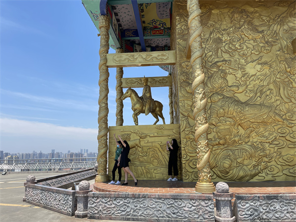天氣晴好的周末,這裏總是人頭攢動,這個俯瞰長沙的最佳位置,引得遊客紛紛舉起手機。讓人驚艷的是,頂樓築有盤古開天、嫦娥奔月等超大型塑像,讓人嘆為觀止。
