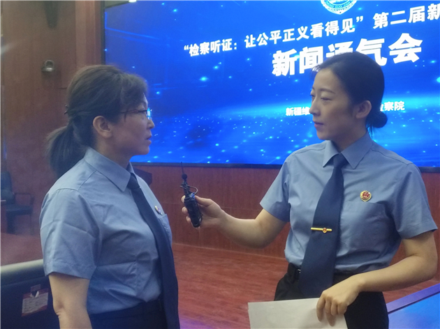 6月7日上午,新疆維吾爾自治區人民檢察院召開「檢察聽證:讓公平正義看得見」為主題的新聞通氣會,自治區人民檢察院檢察委員會專職委員、二級高級檢察官王秋麗通報新疆檢察機關開展檢察聽證工作總體情況,發佈7起檢察聽證典型案例。
