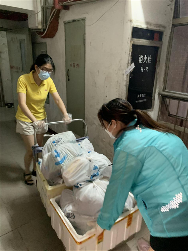 陳茵敏(黃衣)幫助社區運送防疫物資