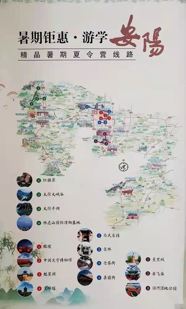 依託安陽十大中國研學旅遊目的地城市品牌優勢,發揮中國文字博物館、紅旗渠、殷墟、岳飛廟等豐富的研學基地和紅旗渠精神營地資源,面向省內外旅行社等中小學夏令營組織方推出優惠夏令營線路。