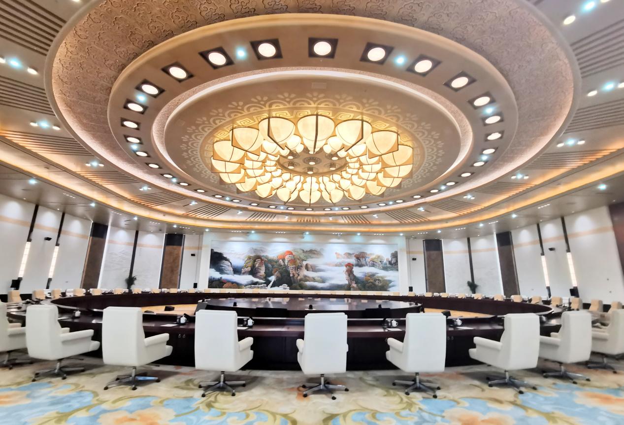 長沙廳總面積達1800㎡,層高7.5m,屬於圓桌行政會議廳,配備了國際化高端峰會設備,大廳牆面採用浮雕技術刻畫着長沙的繁榮與發展歷程,展現了長沙悠久的歷史文化底蘊。自長沙國際會議中心建成以來,這是長沙廳首次投入使用,也是會議中心首次全館使用,可謂看點十足。