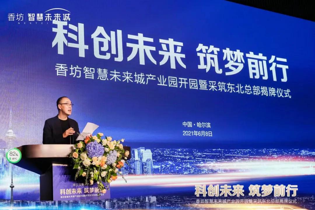 6月8日上午,香坊·智慧未來城產業園開園暨采築東北總部揭牌儀式成功舉辦。哈爾濱市委副書記、市長孫喆,市政府秘書長方政輝,香坊區委副書記、區長司炳春,副區長王宇虹,采築平台CEO都軍,哈爾濱萬科總經理金亞斌,以及市、區兩級相關部門負責同志和22家采築產業鏈龍頭企業高管出席本次活動。