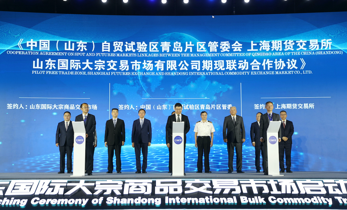 山東省副省長汲斌昌在會上致辭稱,山東自貿試驗區是新時代山東擴大對外開放的重要陣地,青島片區擁有全國第二大外貿口岸,是鐵礦石、原油、橡膠、棉花等全國重要大宗商品中轉基地。本次活動的舉辦標誌着山東國際大宗商品交易市場各項業務正式啟動,將進一步聚合山東自貿試驗區和省屬骨幹企業優勢資源,發揮青島港作為東北亞重要大宗商品流通樞紐的區位優勢,更有效率地實現內外市場聯通,推動大宗商品貿易集聚高效發展。山東省政府將推動有關方面,聚焦體制保障、實體經濟、創新發展、防範風險,積極支持山東國際大宗商品交易市場建設。