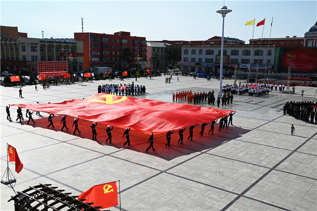 呼瑪縣還會同韓家園林業局一起在縣人民廣場開展了「傳承百年志 奮進新征程」慶祝建黨百年黨旗接力活動,縣局兩地300餘名幹部群眾代表一同重溫了入黨誓詞,大家又一次接受了深刻的黨性教育和靈魂洗禮,參加活動的黨員幹部、職工群眾分別與黨旗合影,表達了對黨對祖國母親的無比熱愛和真摯祝福。