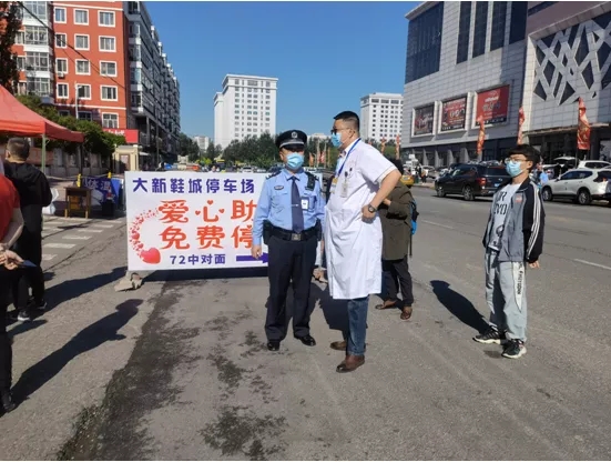 道外分局在轄區考點附近設立了「公安駐勤服務站」,在維護考點秩序的同時,隨時接受考生及家長的求助,並提供便民服務;同時,為緩解高考期間考點周邊交通壓力,解決考生家長「停車難」問題,大有坊街派出所聯合轄區企業大新鞋城,在72中考點對面開闢了「愛心停車場」,免費提供130個車位給考生家長使用,保障考生順利出行。