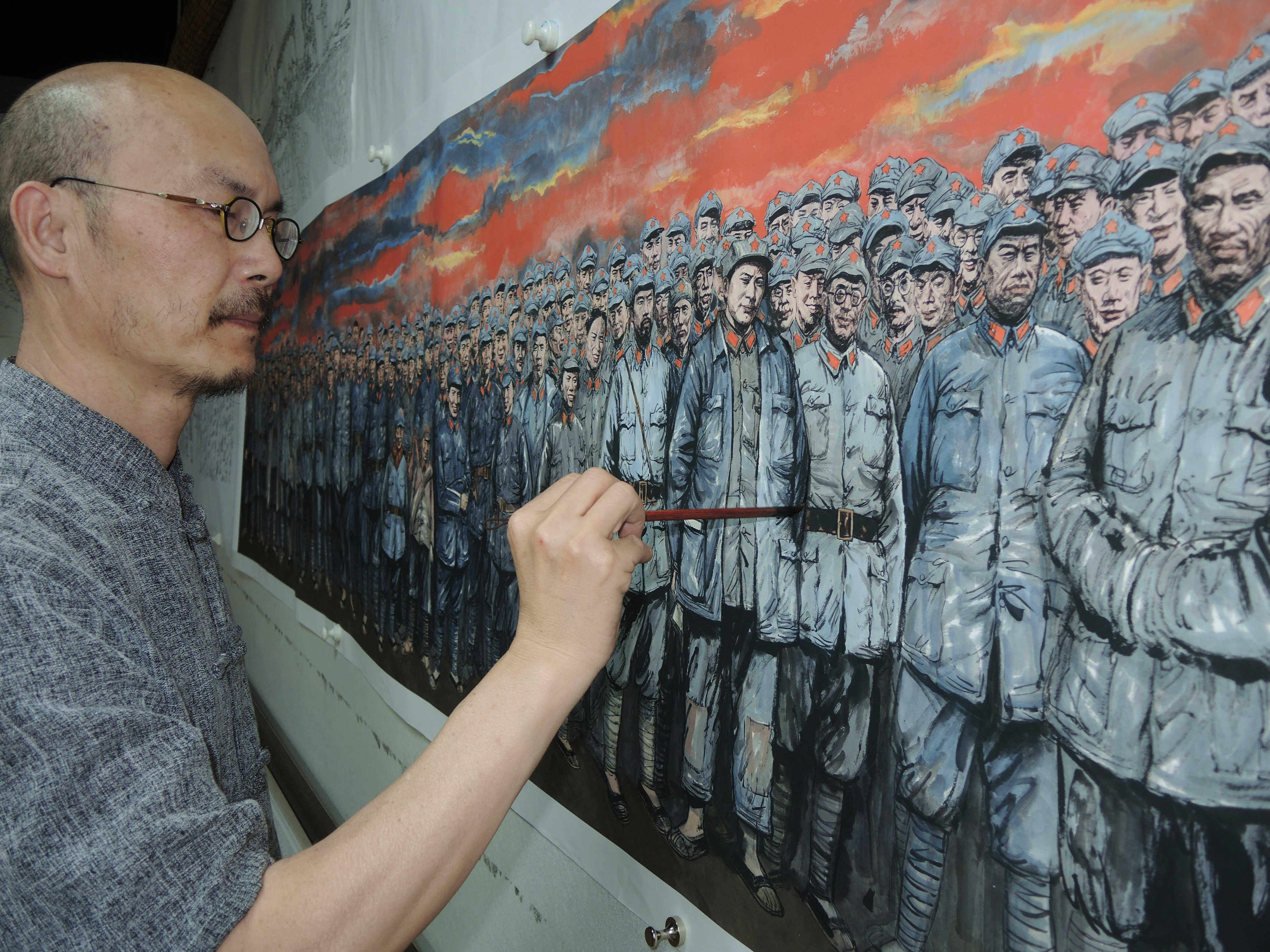 于信強在為建黨100周年而創作長卷《紅色地平線》