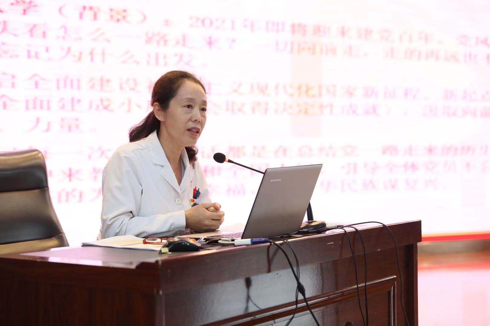 6月10日,哈爾濱市第一醫院按照上級黨委和院黨委黨史學習教育工作統一部署,黨委書記錢朝霞在醫院多功能廳以《從黨史學習教育中汲取精神、智慧、力量——做新時代保障人民衛生健康的忠誠衛士》為題講述了一堂黨課教育。院總會計師景宇煊、內科黨支部書記劉渤、門診黨支部書記張春麗等內科、門診黨支部近200名黨員幹部參加此次學習教育活動。