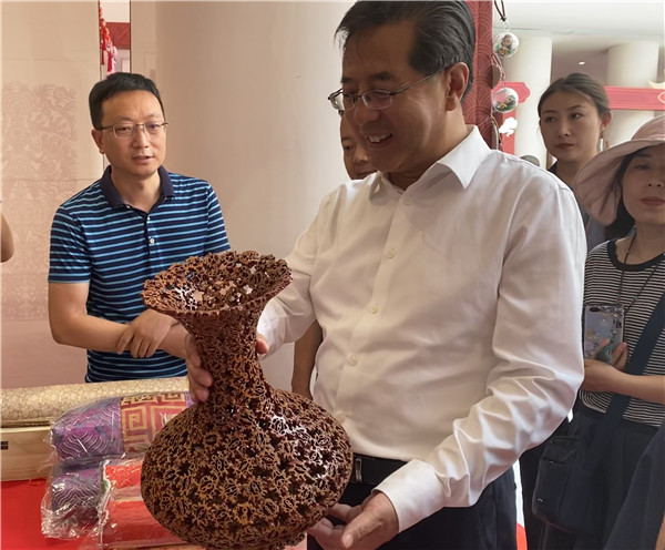 甘肅省委宣傳部副部長、甘肅省文化和旅遊廳廳長陳衛中參觀非遺展覽