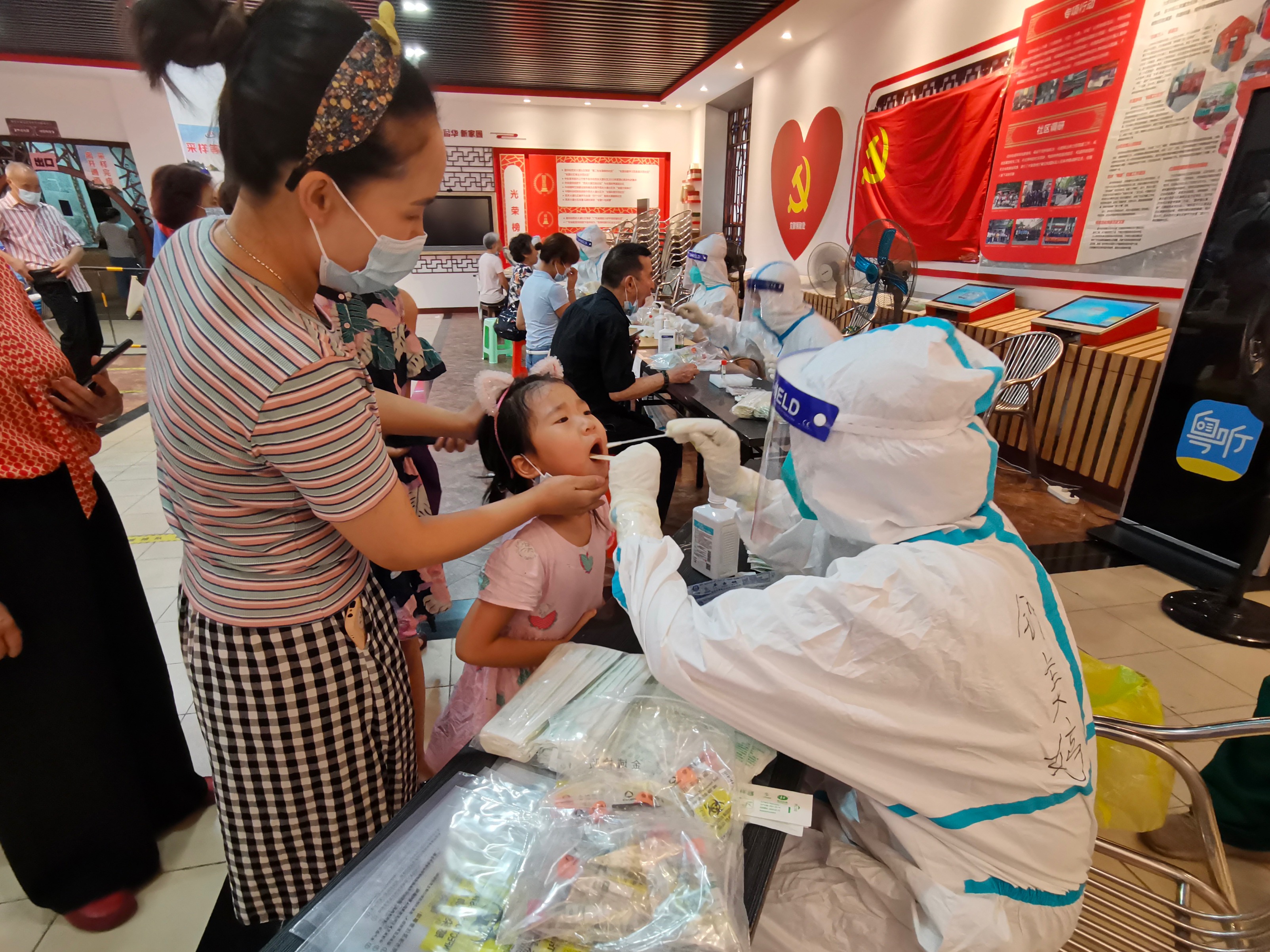 黃埔區支援荔灣區核酸採樣醫療服務隊隊員給小朋友做核酸採樣