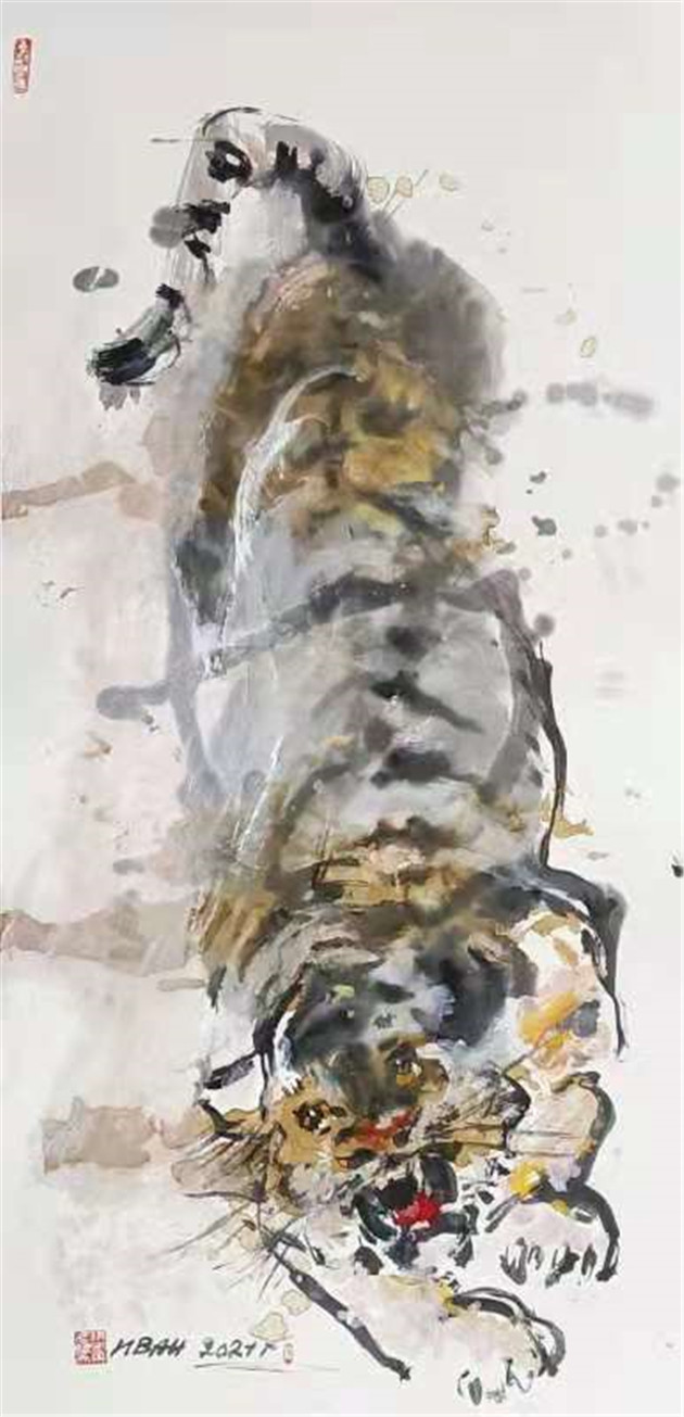 伊萬·達尼洛夫在疫情期間開始嘗試用水墨進行創作,將他的視角、技法和對中國文化的理解、情感注入筆墨。他的水墨作品落筆精準、堅定,線條粗細轉折充滿表現力,用墨濃淡明辨、暈染得宜,極具張力。創作中,即保留了他個人對於事物的視角和理解,融入了油畫的結構技巧,又很好的體現了中國水墨含蓄優雅的意境,大有「筆不工而心恭」的大寫意之美。