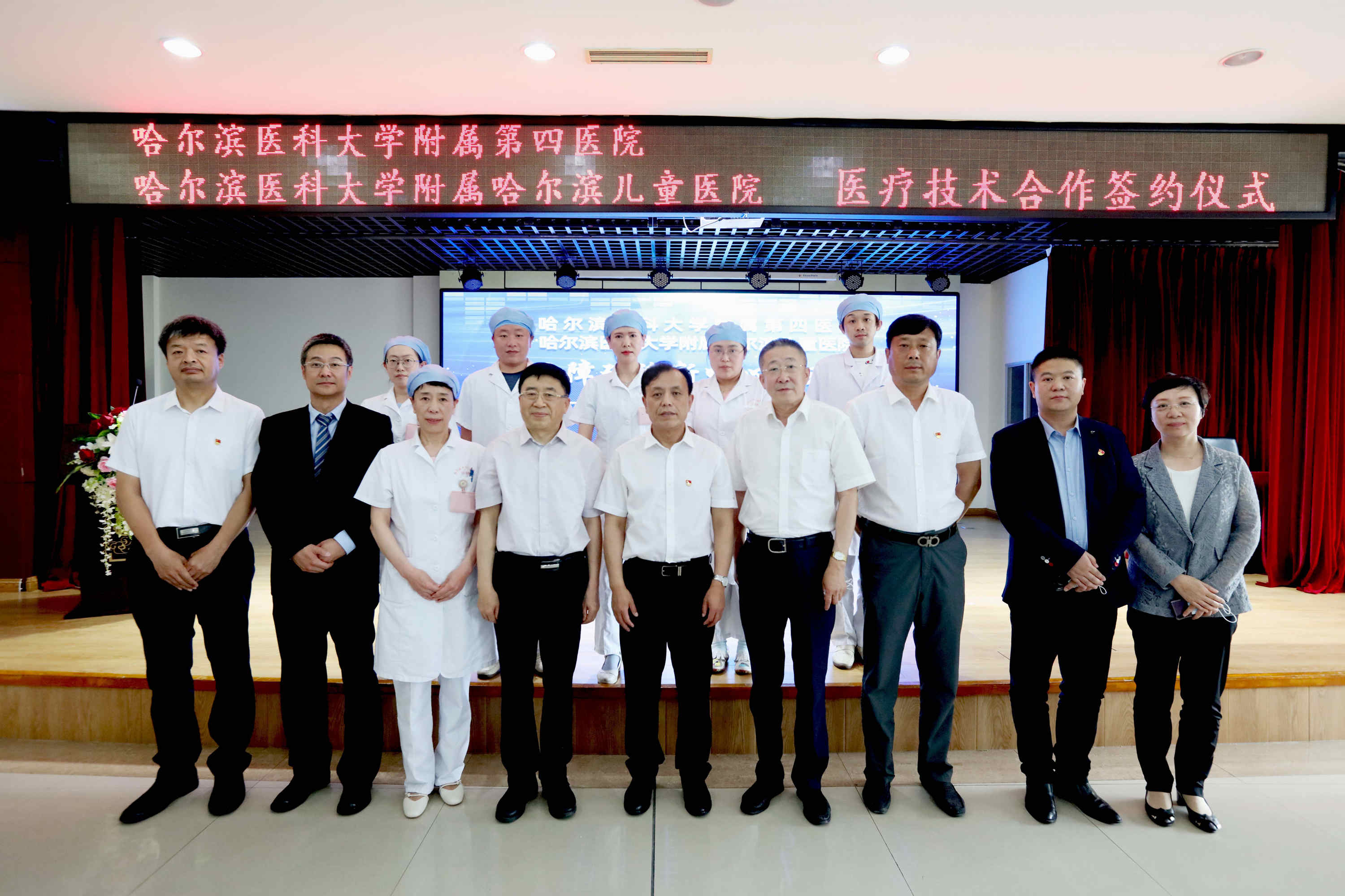 哈爾濱醫科大學附屬第四醫院吳江副院長、醫務部張曉亮主任、耳鼻喉科徐平主任、周彬主任、馮淼老師,哈爾濱市兒童醫院黨委書記牛曉波、院長孫新剛、醫療副院長張世偉、行政副院長劉旭光,以及醫務人員150餘人參加簽約儀式。