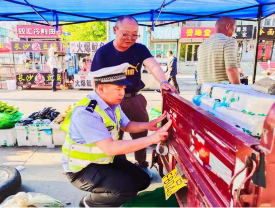 為了把這件關係到群眾「生命安全的實事」做好,富裕縣交警隊宣傳中隊的民、輔警們通過主動和業主們打招呼拉近距離,聊經營、話家常來了解他們的年齡、住址及出行方式,接觸中宣傳戴好安全頭盔、不要違法載人、不要搶佔機動車道、不要闖紅燈,以及駕駛輕型貨車時一定要系好安全帶、不酒後駕駛、要禮讓行人等交通安全知識。民警們還針對「小攤兒」業主們「晚歸」的特點,準備了反光標識粘貼在他們的電動三、四輪車的貨箱欄板上,為路上安全貼上了「護身符」。