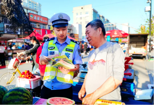 「路上一定要注意交通安全,一定要戴好安全頭盔、不要違法載人、不要搶佔機動車道……這樣出行才是安全出行。」黑龍江富裕縣交警大隊宣傳支隊的民警對夜市攤主王大哥耐心的說到。