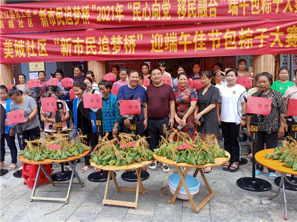 當日,千餘名社區群眾參加了包粽子比賽。此次從江縣通過深入推進「新市民·追夢橋」工程開展包粽子活動,旨在進一步加強對搬遷社區職工群眾對黨的感恩教育,讓廣大社區搬遷群眾深切感受到了當下的幸福美好生活,從而增強「感黨恩、聽黨話、跟黨走」的堅定信念。