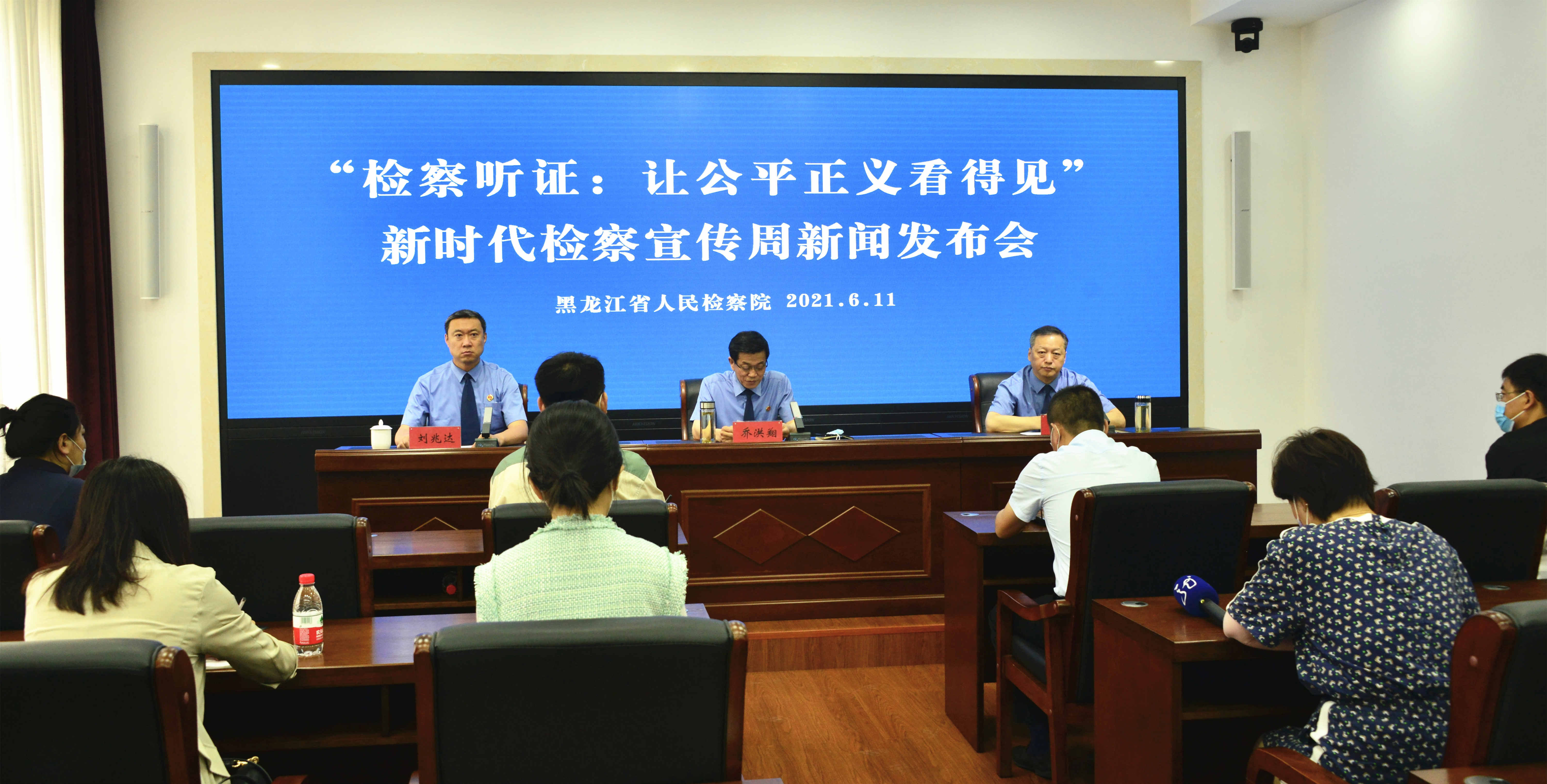 6月11日,黑龍江省檢察院召開「檢察聽證:讓公平正義看得見」新聞發佈會,通報2020年以來檢察聽證工作開展總體情況和探索簡易公開聽證工作開展情況。省檢察院黨組成員、副檢察長喬洪翔,省檢察院第十檢察部主任劉兆達發佈有關情況,省檢察院辦公室主任杜文勝主持發佈會。