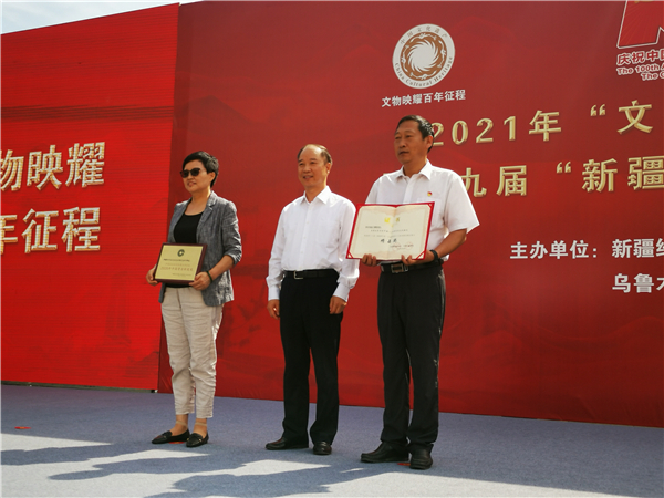 啟動儀式上,為我區入選國務院公布的第五批國家級非物質文化遺產代表性項目名錄的項目、為入選新疆傳統工藝傳承基地的單位頒牌。為和田地區博物館《五星出東方利中國——和田歷史文化陳列》榮獲第十八屆全國博物館十大陳列展覽精品獎、新疆文物考古研究所尉犁克亞克庫都克烽燧遺址考古發掘項目入選中國社會科學院「2020年六大考古新發現」頒發獲獎證書。在啟動儀式結束後,參加主場活動的領導和幹部群眾參觀了《八路軍駐疆辦事處歷史陳列》《人間正道是滄桑——慶祝中國共產黨成立100周年主題展》圖片展。