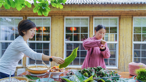 黃山雲亼山宿邀請客人體驗裹粽子。李琴 攝