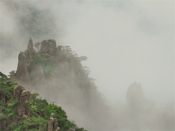 端午假期,黃山風景區天氣變化較明顯,三日景色皆不同。雲霧繚繞、煙雨濛濛、天朗氣清,不同天氣下的黃山美景在這個假期一次全部呈現給登山遊客,景區氣溫在16——21℃之間,十分適合遊覽觀光。初夏黃山,綠意盎然,清新自然。160.6平方公里的世界,放眼望去,綠色的海浪鋪天蓋地,清秀靈動。西安遊客李鳳琦一行4人端午假期專門來黃山,看到雄偉險峻的黃山後,他們紛紛表示不愧是“天下第一山”!