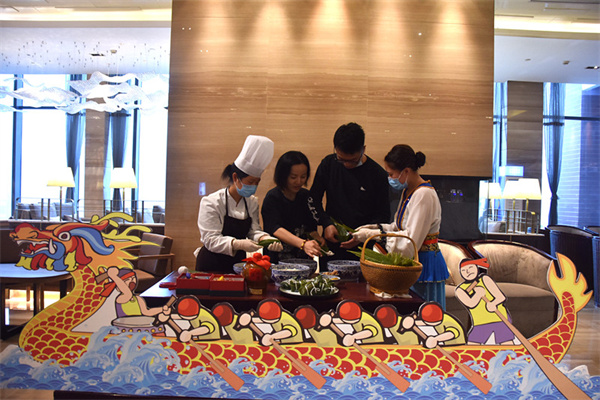 西海飯店邀請遊客包粽子 錢皓辰 攝