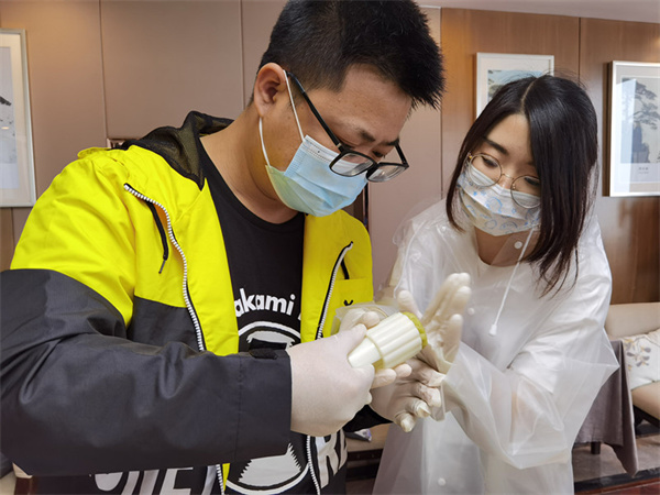 玉屏樓賓館邀請遊客製作綠豆糕 張濤 攝