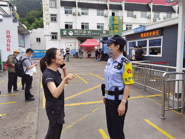 黃山風景區民警為遊客提供諮詢服務,切實保障來山遊客安全 蘇中波 攝