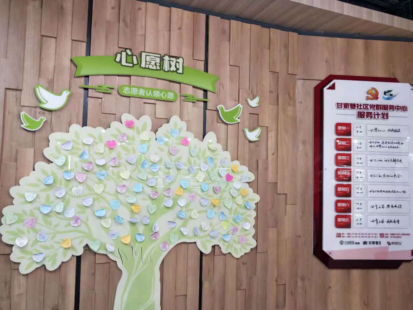上述課堂僅僅是該社區開展「我為群眾辦實事」實踐活動的一個縮影。在社區的大廳里,還設有「民語民願」收集箱,社區居民可以通過掃描二維碼在線填寫訴求,亦可手寫願望投入箱內,工作人員會定期整理並進行辦理,並公布於社區居民心愿樹上顯示辦理結果。