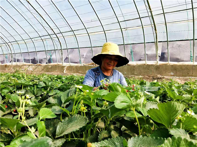「我們收入好着呢!這幾個棚我種的草莓、桑葚,年初開始每天都有遊客來採摘,來過的老客戶還會打電話訂貨,同時我們也給超市供貨,忙得很。」53歲的甘肅省張掖市甘州區陳寨村村民邵愛紅在自家草莓棚里對記者如是說到。