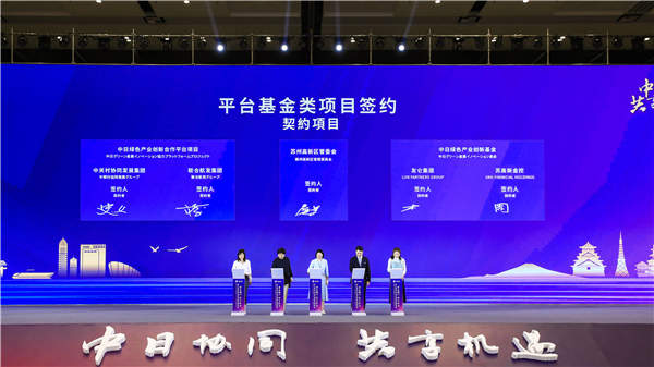 簽約儀式上,總金額共計15.7億美元的12個平台類/產業類項目集中簽約。在平台基金類項目簽約中,蘇州高新區與中關村協同發展集團、聯合航發集團、友侖集團、蘇高新金控代表簽約,將推動形成優勢互補,促進中日綠色產業合作發展。