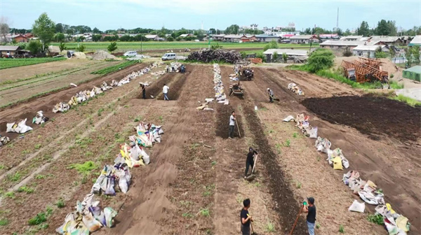 拖拉機的轟鳴聲響徹黑龍江省鐵力市滿江紅村六月的土地,漫山遍野收穫的平貝母似繁星點點「灑落」大地,種植戶們你一鍬我一鏟,與轟鳴聲形成歡快的節奏,笑容與汗水在他們臉上成為這個夏天美麗的篇章。鐵力市滿村紅貝中藥材有限公司負責人霍春林在起平貝的田間地頭,擦着汗水,被豐收的喜悅浸透心田。「豐收啦,我們不僅向產量要效益,而且要延長產業鏈,向深加工要效益將當地藥材當地做成藥,讓當地藥材當地成藥,不要北藥南運。」