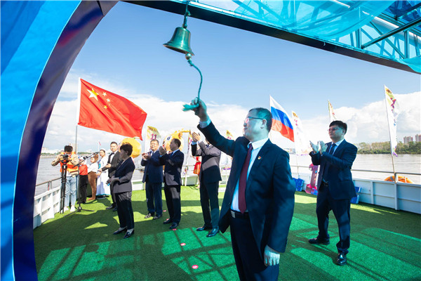 黑河市委書記馬里與俄方同步敲響開幕銅鐘