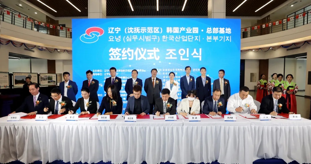 6月18日,在遼寧(瀋撫示範區)韓國產業園·總部基地開園儀式上,世界韓人貿易協會、遼寧東北亞經濟文化促進會、韓商電商(遼寧)有限公司、遼寧康派生物科技有限公司等商協會、韓資企業簽約入駐,標誌着瀋撫示範區在構建以「三園一中心」為核心的國際合作平台,推進高水平對外開放道路上又邁出了一大步。