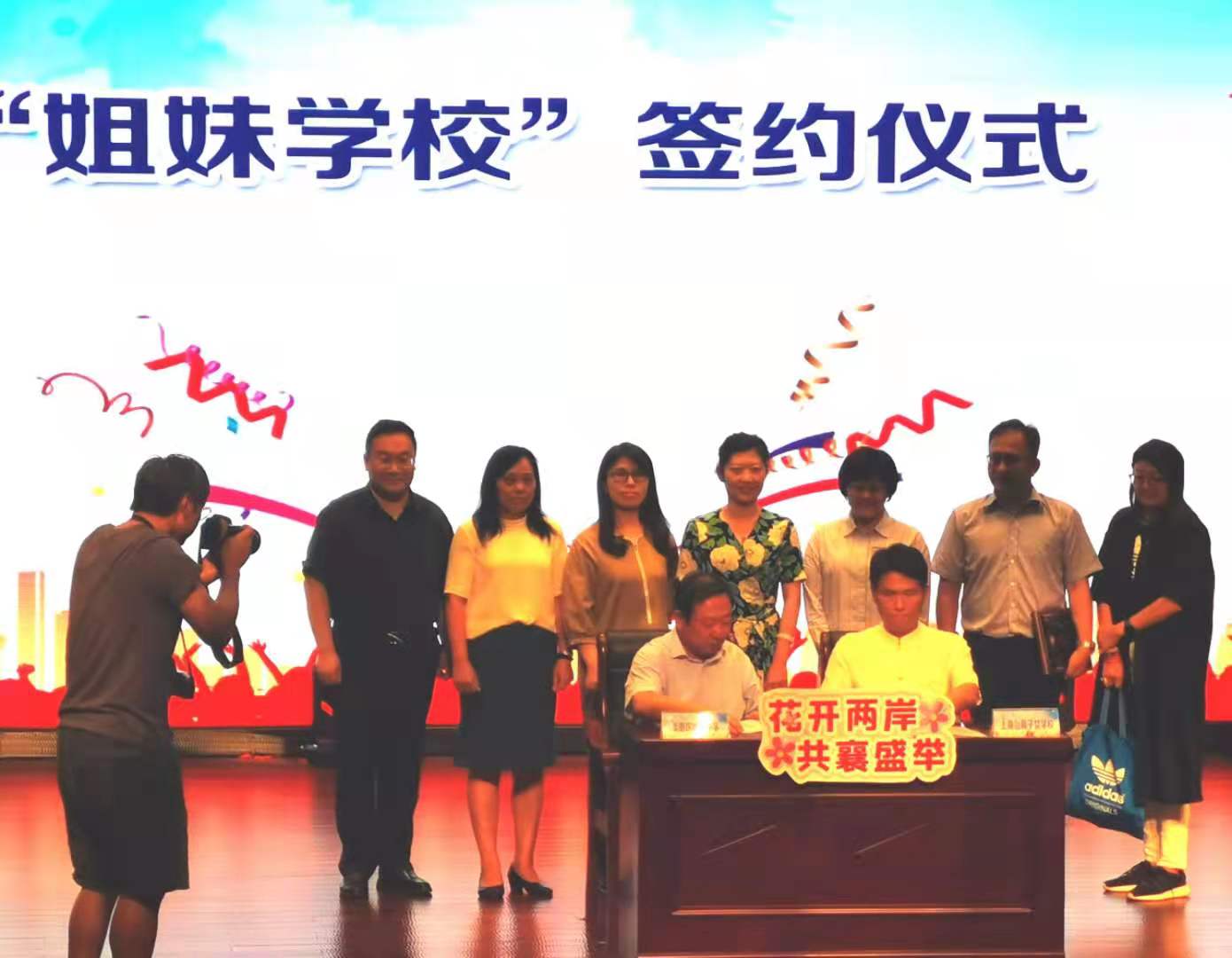 陳俊男指,兩校的教育理想和培育未來人才的目標是一致的,希望兩校簽訂姐妹學校後,加強老師和學生之間的互動交流,打開兩岸之間的藩籬和隔閡,促進兩岸青少年融合發展。隨後,兩校的同學共同奉獻了一台「青春歡樂頌」歌舞表演,節目精彩紛呈,現場高潮迭起。