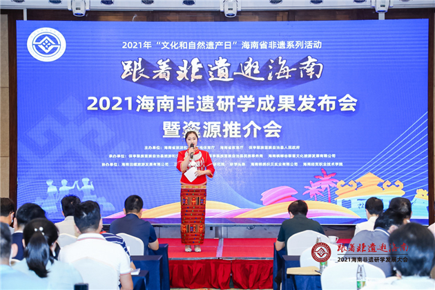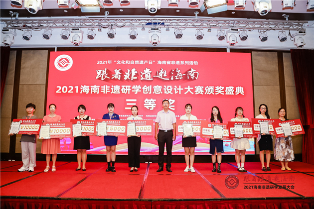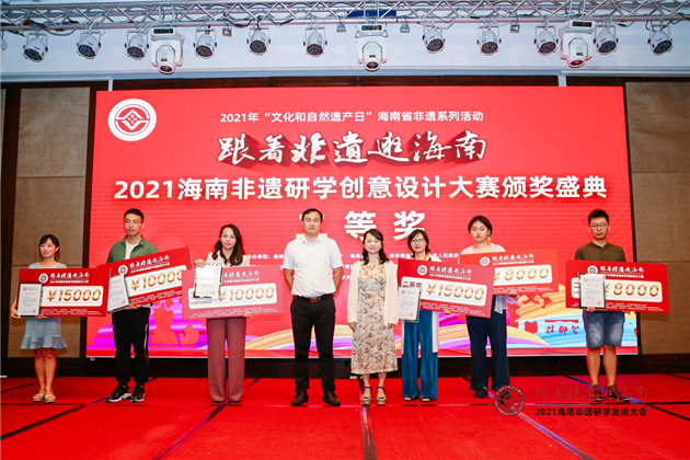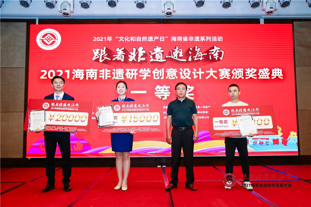 6月22日,“跟著非遺逛海南——2021海南非遺研學發展大會”非遺研學成果發佈會暨簽約儀式在海口舉行,對79件入選創意設計大賽的作品進行頒獎。此次活動由海南省旅遊和文化廣電體育廳、海南省教育廳、保亭黎族苗族自治縣人民政府聯合主辦,保亭黎族苗族自治縣旅遊和文化廣電體育局、保亭黎族苗族自治縣民族事務局、海南檳榔穀黎苗文化旅遊發展有限公司共同承辦。