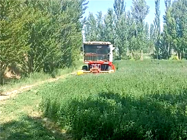 仲夏時節,在甘肅省瓜州縣河東鎮雙泉村四組柴全忠家的苜蓿地里,連片的紫花苜蓿流青溢翠,聯合收割機在田野上劃出一道道美麗的線條,一派豐收景象。