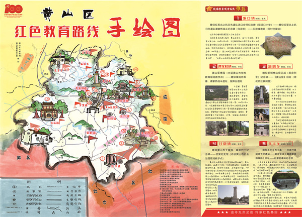 從血戰譚家橋到樵山保衛戰,從黃山區最早黨支部——中共南山支部誕生地到中共皖南地委機關報——《黃山報》舊址,這份獨特的手繪紅色教育路線圖將轄區內的20個愛國主義教育基地、革命遺址遺跡串連起來,推出10條“革命教育路線”,將紅色故事彙聚起來,勾勒出百年黃山區的紅色文化版圖。
