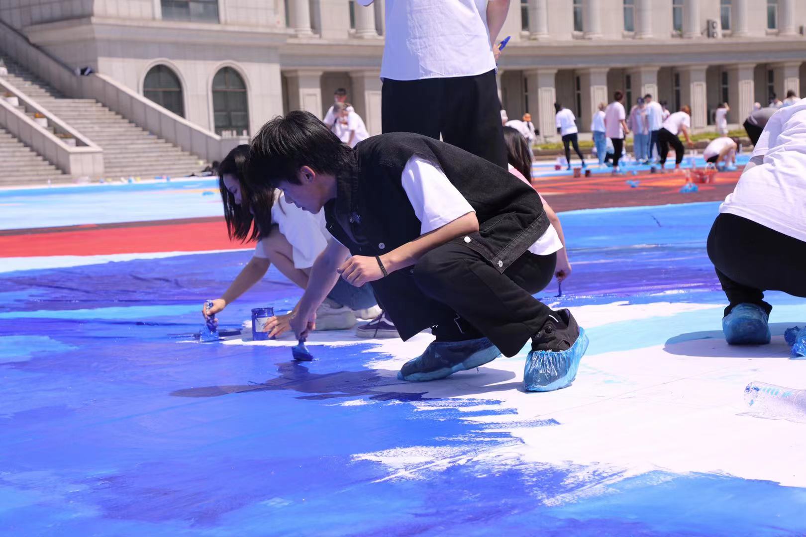 活動中,哈師大校領導與師生共同參與到書畫創作中,師生們齊心合力,團結協作,充分發揮專業優勢和師範特色,以過硬的專業技能完成100幅紅色內容書法作品和2000平方米的紅船創作,用畫筆描繪紅船精神、用水墨書寫青春夢想。生動壯闊的創作場景,同學們無畏炎炎烈日和創作艱辛,用實際行動體驗紅船精神,用青春和活力彰顯師大學子的朝氣蓬勃,共同完成了一堂紅色書畫主題創作「思政大課」,展現了新時代青年勇立潮頭、敢為人先、堅韌不拔的人生信念。活動最後,全體師生共同唱響《星辰大海》,共同祝願百年紅船,劈波斬浪、行穩致遠。(裴振萍 王琳 郝儷娜)