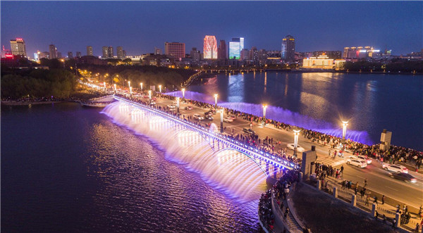 長春南湖大橋音樂噴泉秀 (資料圖)長春市文廣旅局供圖