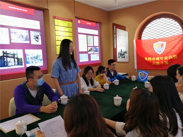 萊西青年尖兵營的隊員們交流分享黨史學習和工作心得