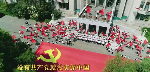 歌曲《沒有共產黨就沒有新中國》師生用歌聲訴說着對黨的赤子之情。歌曲《在燦爛的陽光下》歌頌了中國共產黨「百年征程波瀾壯闊,百年初心歷久彌新」。