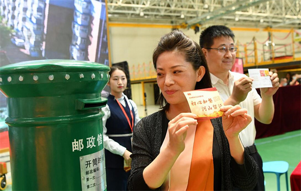 吉林省文化和旅遊廳廳長楊安娣向二道溝郵局舊址的綠色郵筒投寄了「百課開講」活動紀念明信片