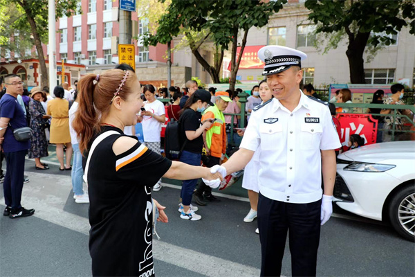 各轄區大隊綜合全市各考場周邊實際情況,實施「一校一策」管控措施,通過設置臨時停車區域、實施臨時交通管制、增加保障警力等一系列「護考」舉措,全力確保考生順利赴考。6時30分,交警道里大隊執勤警力對轄區各考點周邊開展保障工作,一中門前,交警在指揮送考車輛有序停車的同時,還對石頭道街、森林街沿線的大型車輛實時進行分流,保障兆麟街沿線安全、順暢通行。此外,針對中考送考人數較多,校園門前人流較為密集的情況,沿線警力在中午、下午考試結束時段,對石頭道街、兆麟街等沿線道路實施臨時交通管制,禁止車輛駛入,保障考生及家長的安全、高效出行。「交警一系列的精細化管理十分暖心,也讓我們的出行更加放心,為他們點讚」,家長李先生表示。
