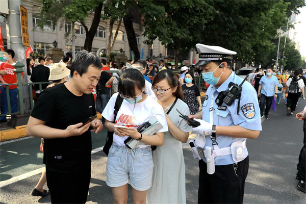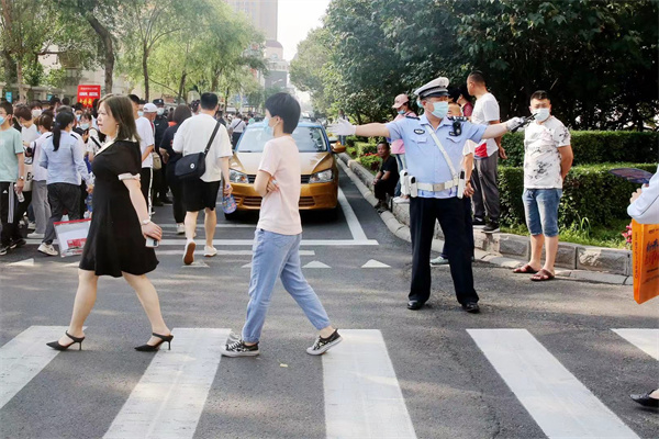 中考首日恰逢周五工作日,送考車輛與日常通勤出行疊加,給各主幹街路、考點周邊道路帶來一定出行壓力。對此,各轄區大隊警力在6時30分全部到崗到位,加強考點周邊、二環橋、文昌橋、和平路、海城橋、霽虹橋等路段的疏導聯動。同時,交警部門在各考點門前設置固定警力,規劃臨時停車區域,即保障送考車輛「即達即離」,也可以確保安全、有序停放。此外,交警指揮中心實時加強視頻巡控力度,對於車行速度緩慢路段,實時指揮巡邏警車、鐵騎就近進行處理,及時拆除輕微交通事故、違停等交通節點,提高道路通行能力。早高峰期間,全市交通平穩、有序,未發生大面積交通擁堵。