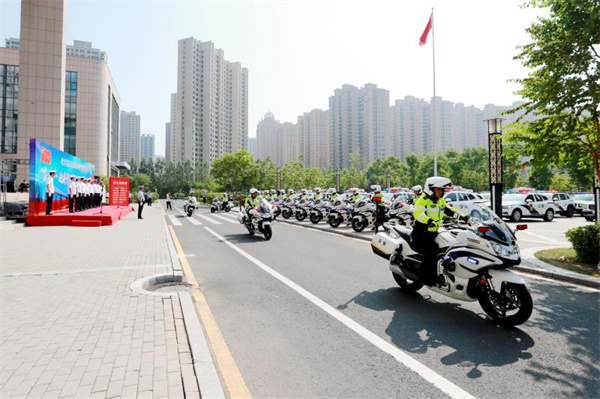 26日早,交警部門舉行慶「七·一」迎建黨百年交通安保誓師大會,向黨和人民莊嚴宣誓,有決心有信心堅決完成交通安保攻堅戰。宣誓後,交警部門共出動警力1900餘人,巡邏警車280餘台,鐵騎摩托45台,最大限度的將警力投放到路面,對全市重點路段進行24小時巡控,確保道路安全暢通。同時,從交警部門的機關處室抽調內勤警力增援到各轄區大隊,負責重點路段靜態交通秩序的專項整治。在市區19處應急處突執勤點位配備警用摩托車38台、巡邏警車19台,每天7時30分至22時與特警、武警共同在全市重點點位執勤。