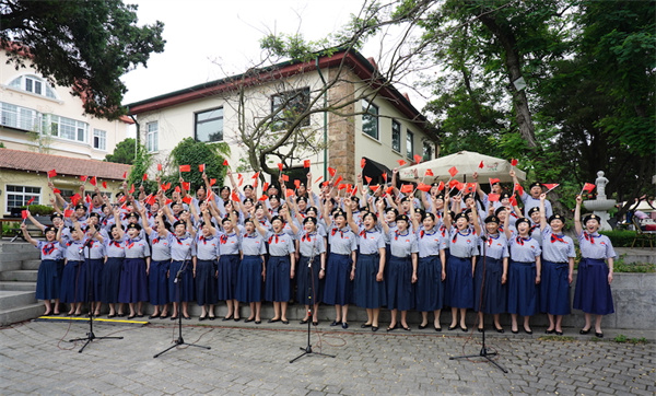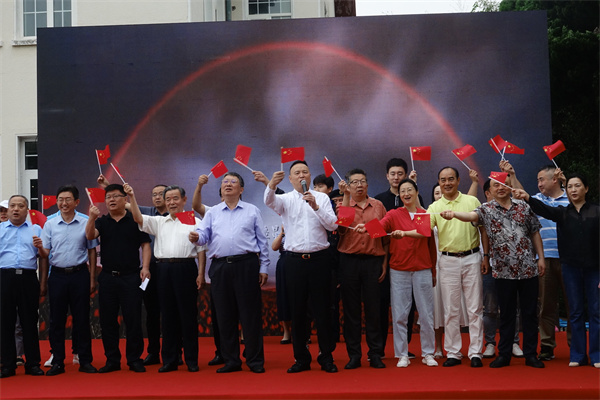 山東省媽祖文化交流協會會長趙起良在致辭中說,「今天,我們用優美動聽的音樂、慷慨激昂的歌聲把台港澳同胞兩岸一家親,把全世界華人華僑期盼祖國更美好的聲音唱出來。無論在香港、在澳門還是在美國、馬來西亞,此時此刻,兩岸三地同胞和華人華僑都在用心傾訴,用質樸的歌聲唱響《我和我的祖國》。在台灣寶島,來自阿里山鄒族部落的靚男美女們唱起了動聽的歌謠,跳起了歡快的舞蹈,『你的家鄉在山東省,我的故鄉在阿里山,從前的時候是一家人,現在還是一家人,手牽着手,肩並着肩,輕輕地唱出我們的歌聲,團結起來,真心相愛,因為我們都是一家人,現在還是一家人。』這是台灣同胞的心聲,也是所有華夏兒女的心聲。今天我們以音樂之名,向我們偉大的在祖國致敬,奏響時代凱歌,共祝祖國繁榮昌盛。」