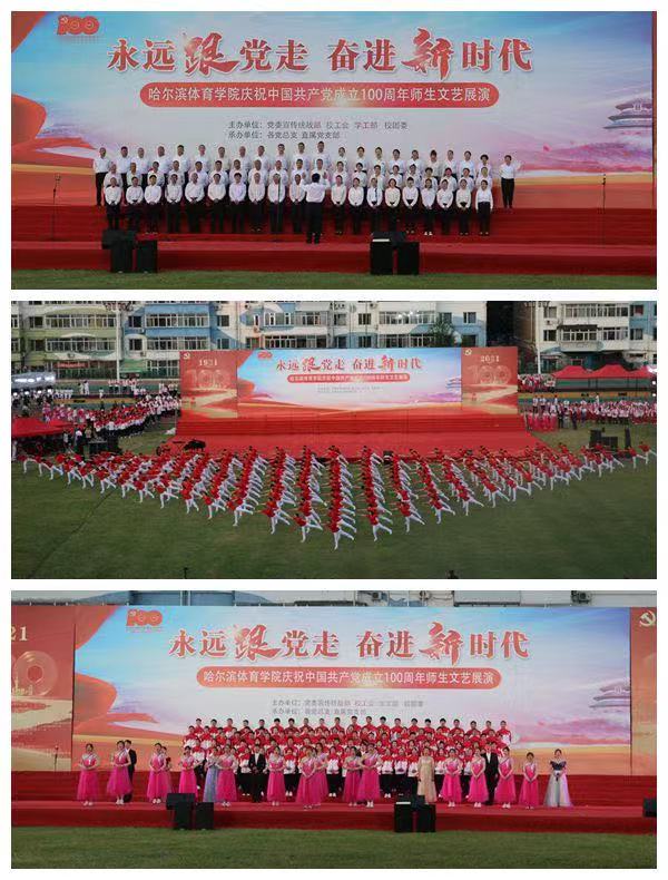 6月28日,在中國共產黨百年華誕來臨之際,哈爾濱體育學院特別奉獻「永遠跟黨走·奮進新時代」師生文藝展演,通過豐富多彩的藝術形式,展現中國共產黨帶領中國人民不懈奮鬥,實現從站起來、富起來到強起來的偉大飛躍。以優秀的文藝作品,彰顯全校師生向着第二個一百年目標奮勇邁進的精神風貌。