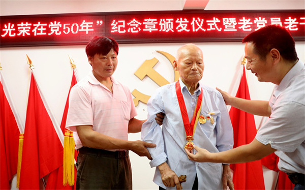 皖歙縣:深山老黨員戴上“光榮在黨50年”紀念章