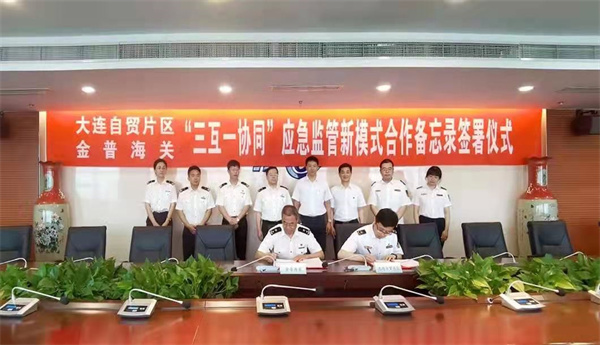 針對這一現狀,大連自貿片區與金普海關從強化事中事後監管工作要求出發,根據雙方工作實際,在全國首創「信息互通、監管互認、執法互助、協同響應」即「三互一協同」應急監管新模式。28日,大連自貿片區綜合監管執法局和金普海關簽署合作備忘錄,並召開新聞發佈會,介紹相關舉措。